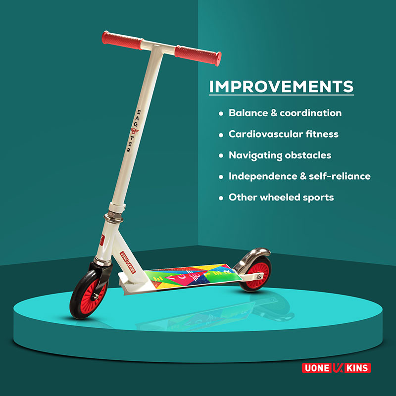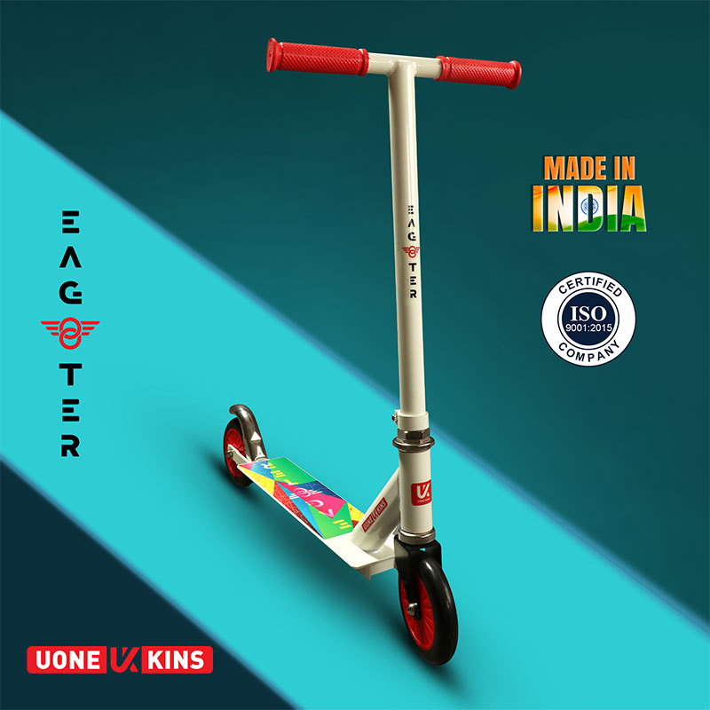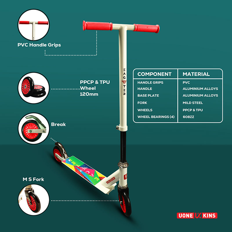 UONE KINS Unisex Kid’s Kick Scooter || 120mm Wheels, Aluminum Alloy Handle & Base || Adjustable 3 Level Height & Weight Capacity 75 kgs with Brakes (Red)